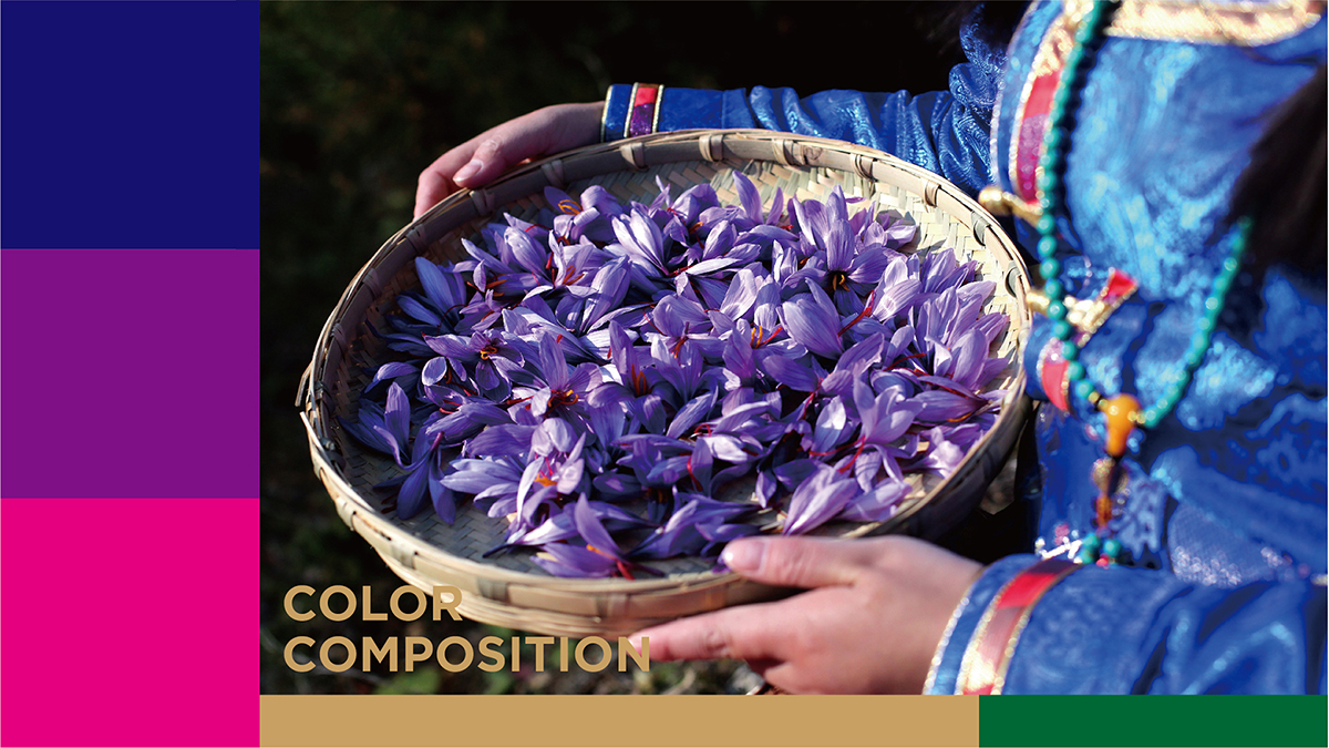 LOGO從格桑華和藏紅花的意向中延伸出抽象的花型,花型蜜而繁,藏味十足,同時用花象征女性,而格?;ū旧淼脑⒁馐沟靡庀缶哂泻亲o、關愛女性的價值觀導向,藏紅花的色彩提取則直接傳達了藏妍堂堅持中藥提取的健康態度。