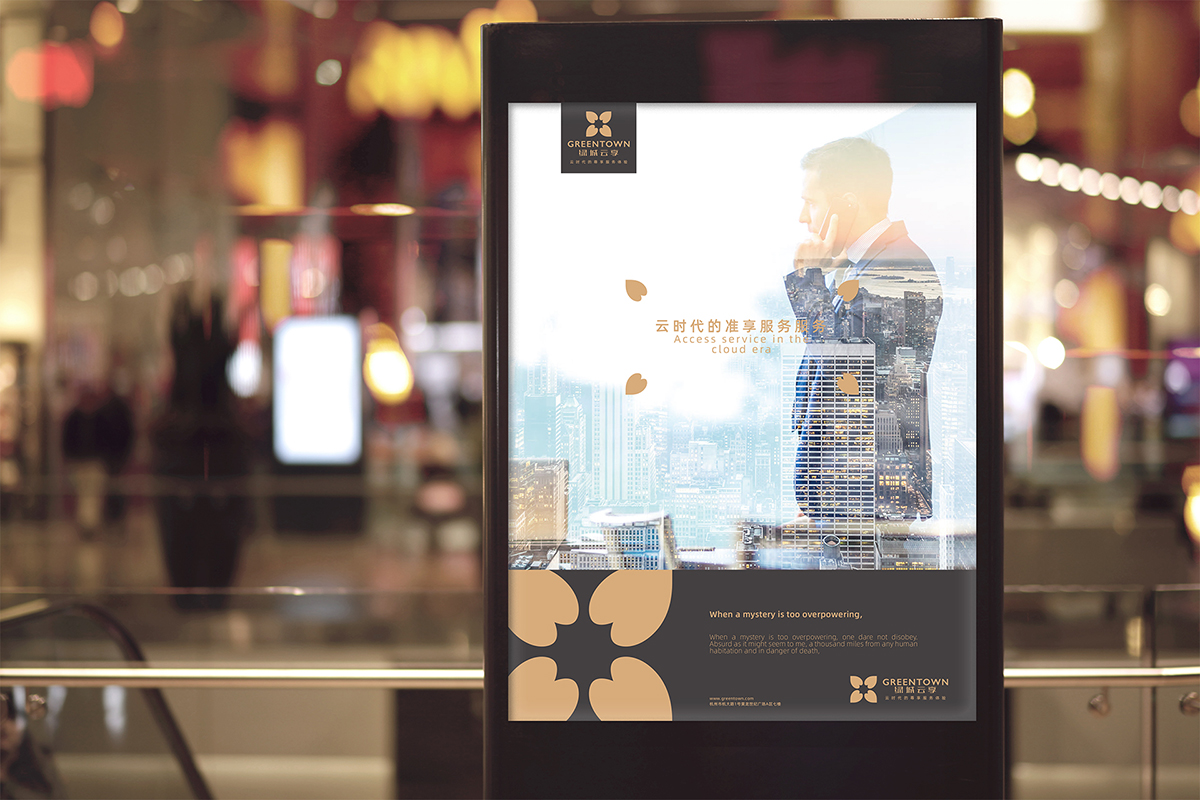 首先我們希望保留四葉桂花的主視覺,一是因為傳承,二是代表著物業(yè)中的四大服務(wù)--保安、保潔、保綠、保修。作為集團,花瓣繞著花蕊體現(xiàn)著凝聚力。作為物業(yè),服務(wù)才是本質(zhì),它是由內(nèi)向外的狀態(tài)。整體圖形中間的負(fù)形是一個太陽的形狀,寓意綠城云享照耀企業(yè),助力企業(yè)成長。標(biāo)志體現(xiàn)了傳承與分享的概念,具有簡潔、現(xiàn)代、品質(zhì)化。