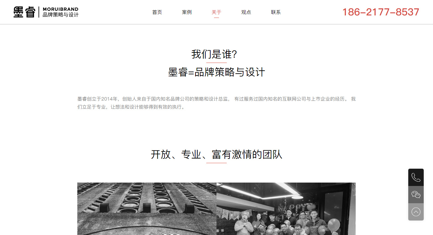 墨睿創立于2014年,創始人來自于國內知名品牌公司的策略和設計總監, 有過服務過國內知名的互聯網公司與上市企業的經歷。 我們立足于專業,讓想法和設計能夠得到有效的執行。